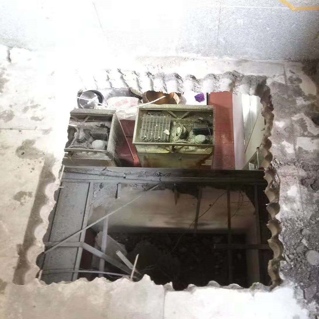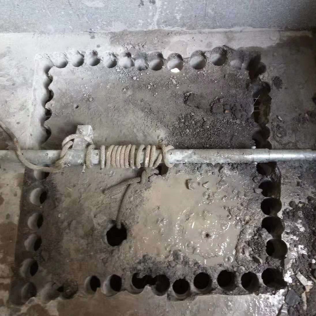 某饭店需要开长宽各一米用于安装升降机。先用六三的钻头,钻出四条边用绳索,绑住水泥块,再慢慢放绳索降下去,电话:15616781933