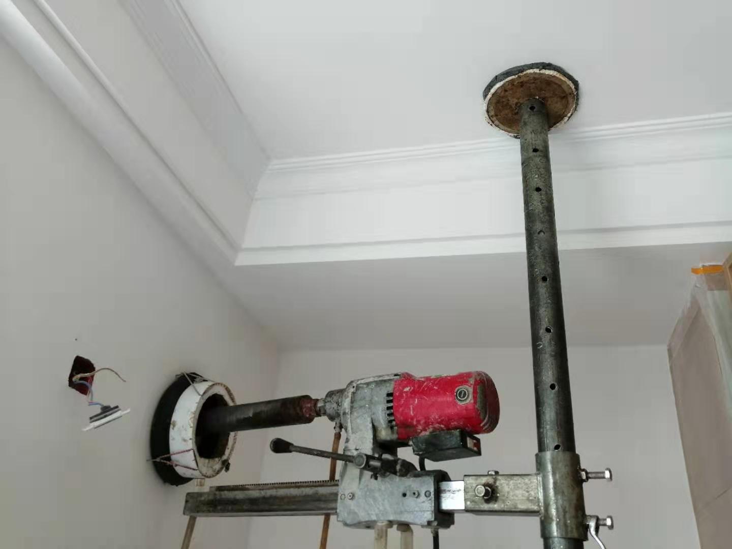 装修好的房屋开孔,我们有保护措施,不损坏墙壁吊顶
